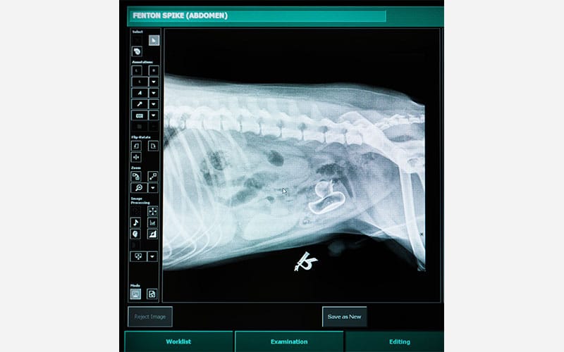 X-rays are a vital diagnostic tool for examining your pet’s bones, joints, chest, abdomen, bladder, and other internal structures. Our hospital uses digital X-ray technology, which provides instant, high-quality images while reducing the need for retakes and minimizing fear and anxiety of the pet along with minimal radiation exposure. Our veterinarians can interpret initial X-ray studies and can send images to a radiology specialist for expert review. Reasons we may take X-rays of your pet include: